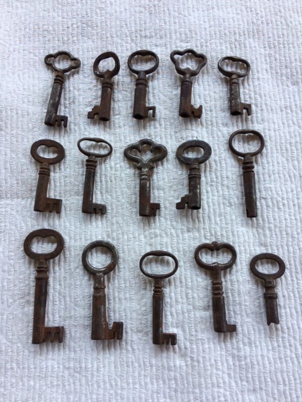Title (ebay affiliate link): LOT OF 15 ANTIQUE SKELETON, FURNITURE, BARREL, CABINET AND OLD LOCK KEYS