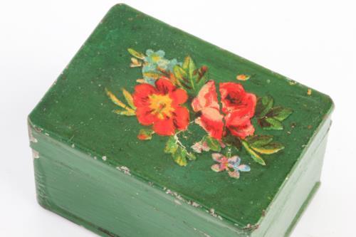 Title (ebay affiliate link): ANTIQUE VINTAGE TIN TOLEWARE TOY TRUNK CHEST DOLLS HOUSE FURNITURE NO RESERVE!