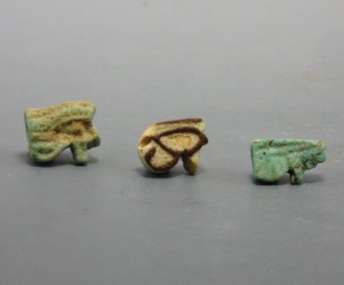 Title (ebay affiliate link): THREE EGYPTIAN FAIENCE EYE OF HORUS AMULETS (678E)