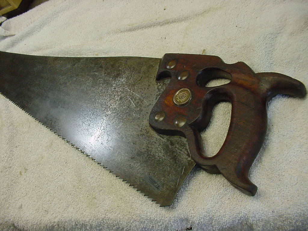 Title (ebay affiliate link): Vintage Disston Hand Saw # 5 Rip saw wheat carved thumb hole handle curved back
