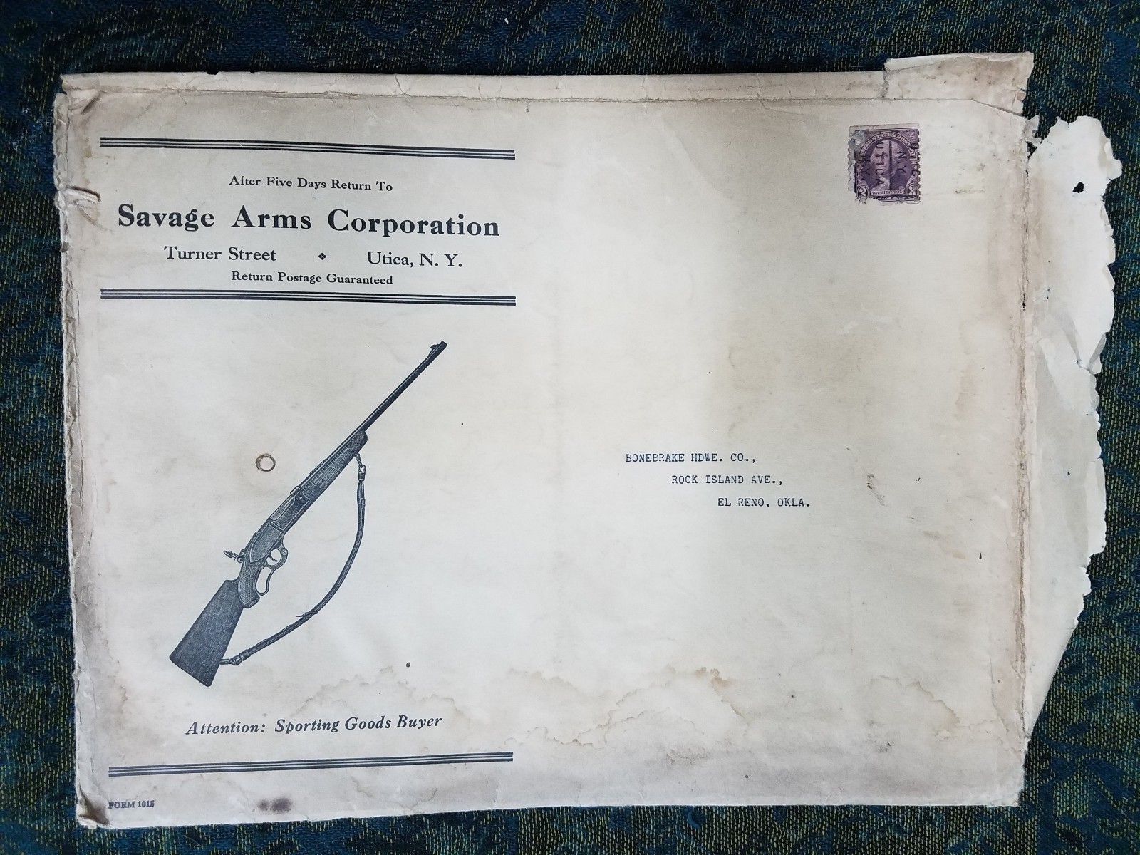 Original 1938 Savage Arms Corporation Envelope,Letter, Catalogues & Price Lists