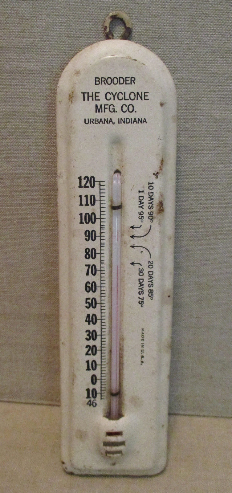 Vintage Advertising-Tin BROODER THERMOMETER-Birds-CYCLONE Mfg.-city-URBANA-IOWA