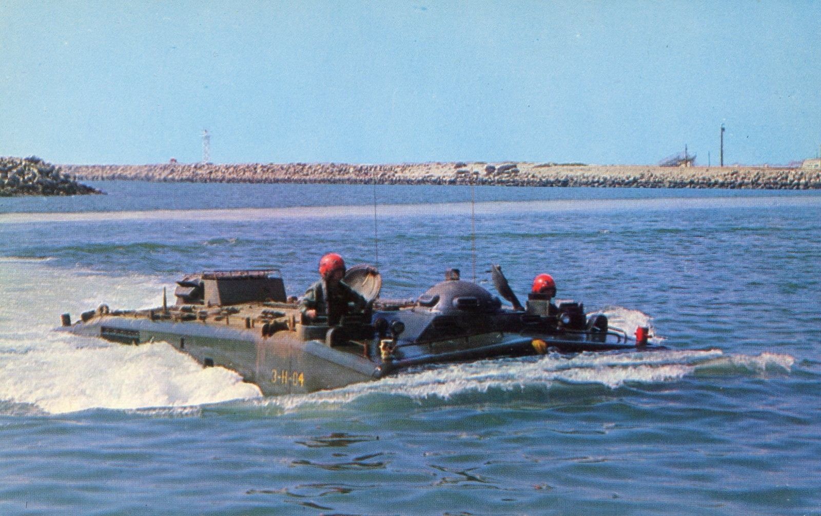 Camp Pendleton CA vintage postcard Amphibian tractor at Camp Del Mar Boat Basin