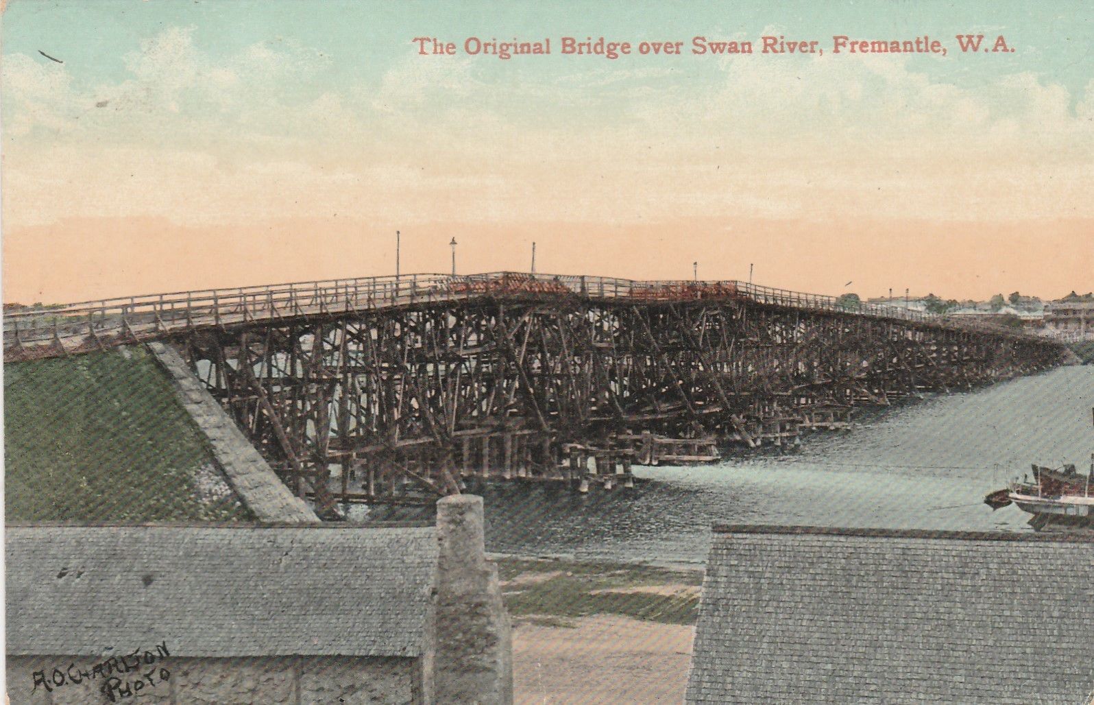 VINTAGE POSTCARD THE ORIGINAL BRIDGE OVER THE SWAN WESTERN AUSTRALIA 1900s