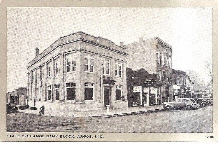 Vintage Postcard Argos Indiana State Exchange Bank Block