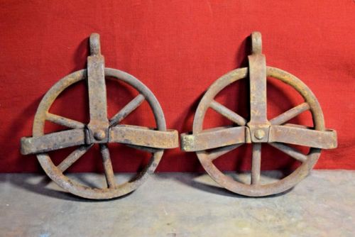 Title (ebay affiliate link): Pair Antique Cast Iron PULLEY PULLIES Steampunk Industrial Rustic Primative
