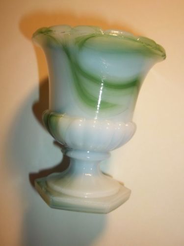 Title (ebay affiliate link): Vintage Akro Agate Slag Glass Green White Vase~ToothPick