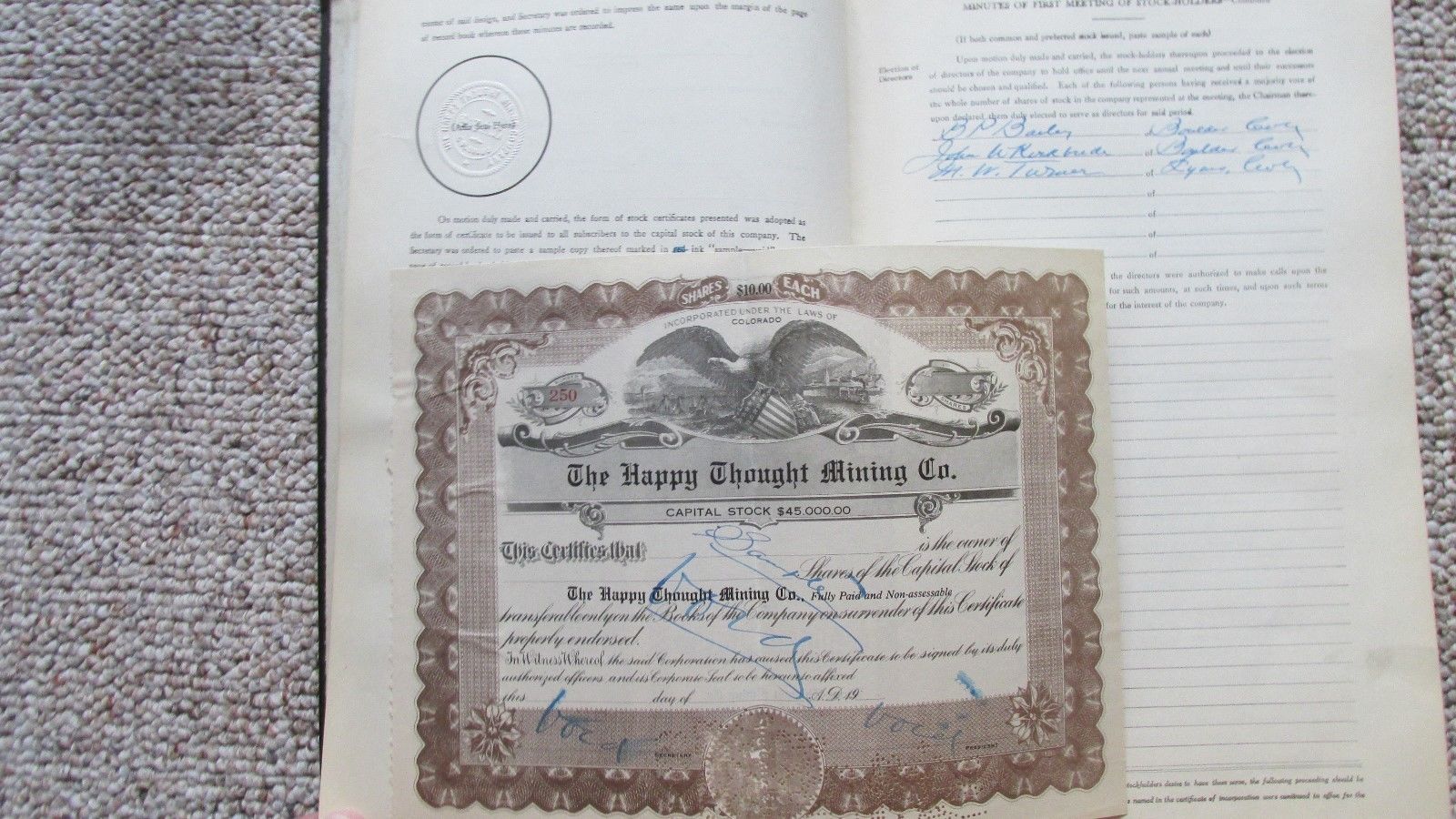 Title (ebay affiliate link): 1927 Boulder County Colorado Happy Thought Mine Stock & Share Holders Ledger