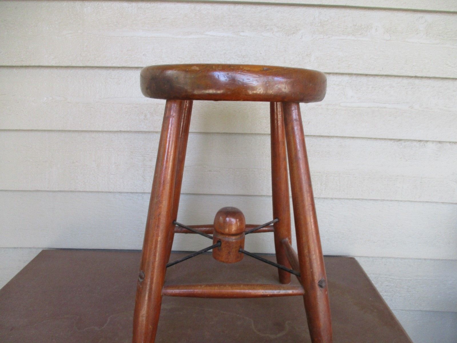 ANTIQUE PINE STOOL WITH CENTER BRACE