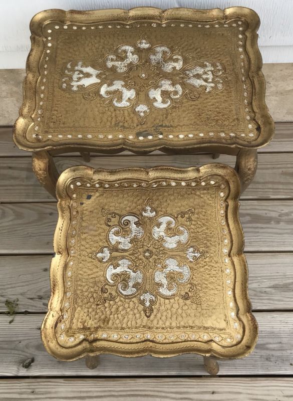 Title (ebay affiliate link): Vtg Gold Gilt Nesting Tables Side End Plant Stands Tole Painted Florentine Set 2