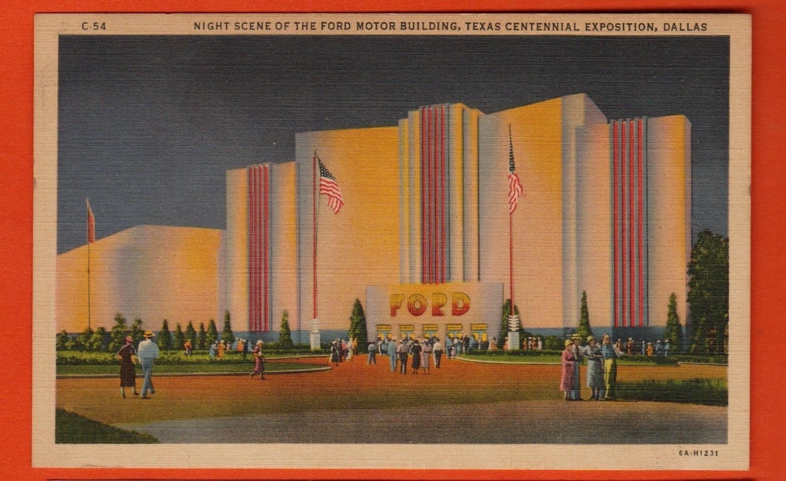 Title (ebay affiliate link): Dallas, Tx/Texas Centennial Expo/ Ford Motor Bldg/ night scene/ linen postcard