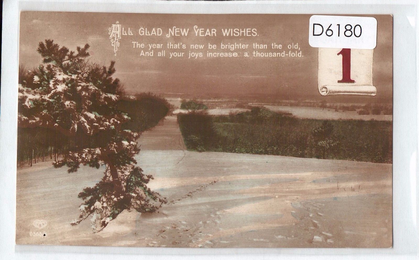 D5727cgt Greetings New Year Snow Scene EAS vintage postcard
