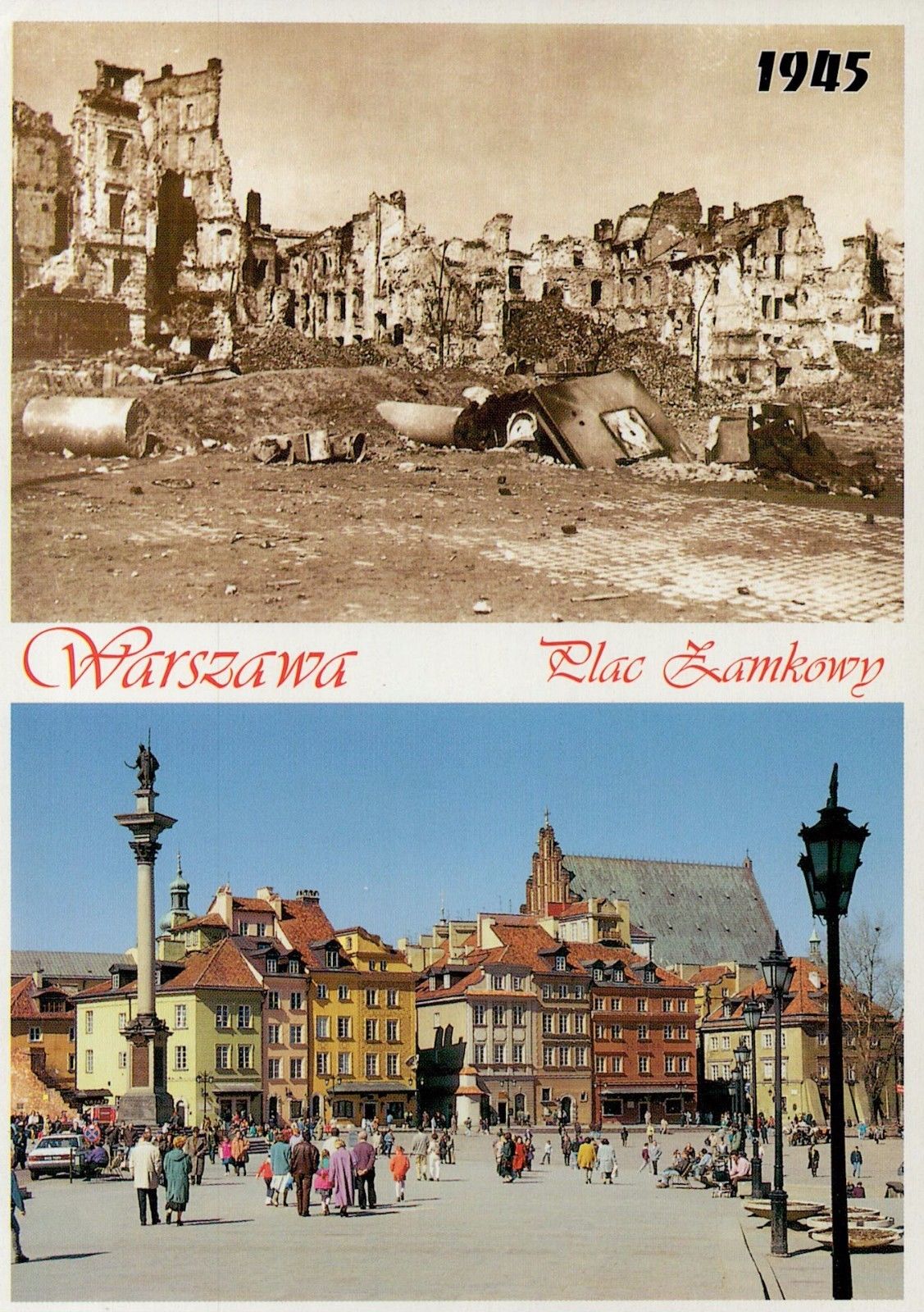L7544cgt Poland Warsaw Castle Square WWII 1945 reconstructed postcard
