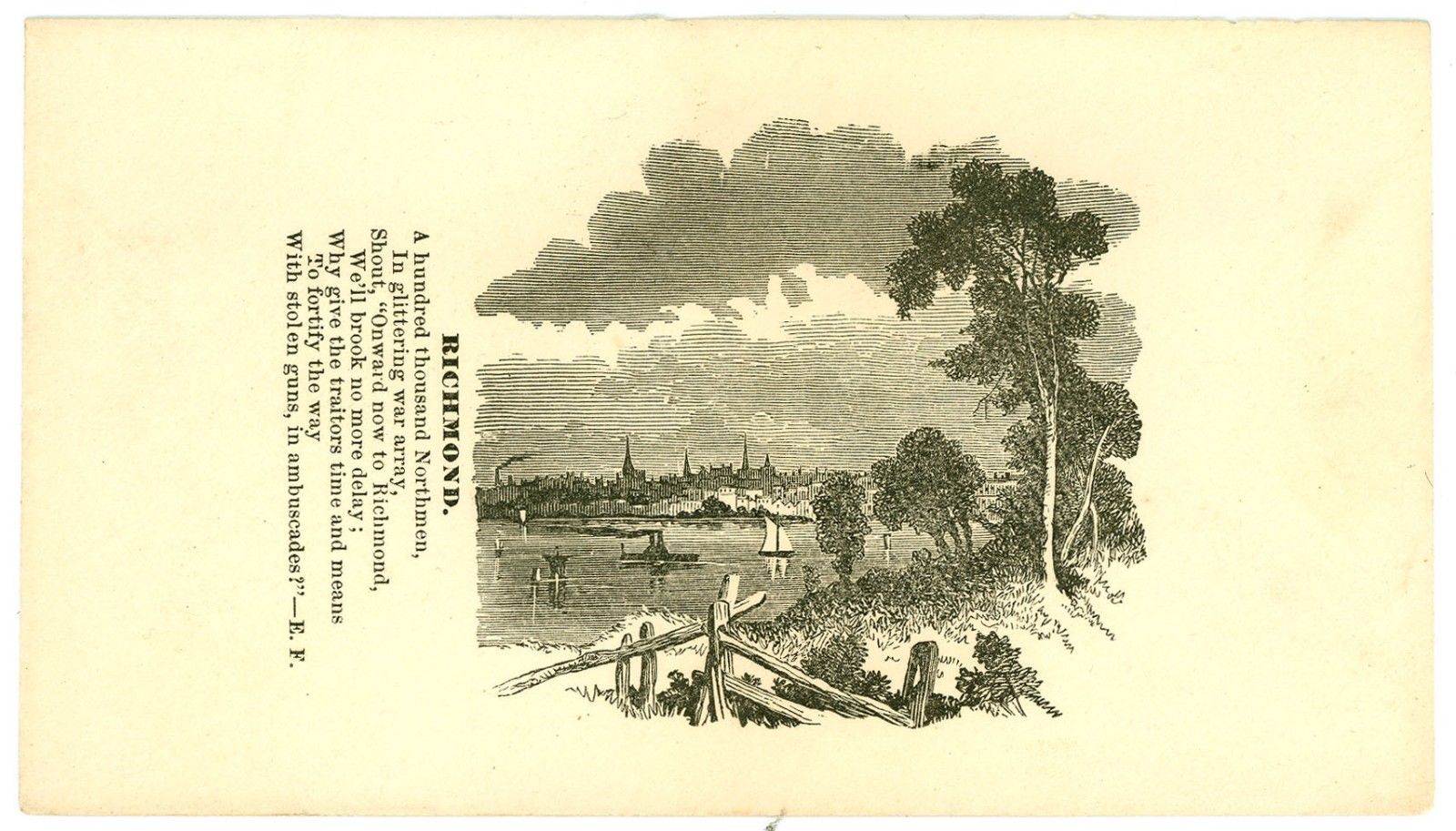 Title (ebay affiliate link): Civil War Patriotic * Onward Now to RICHMOND * View Across River * Poem * c1861
