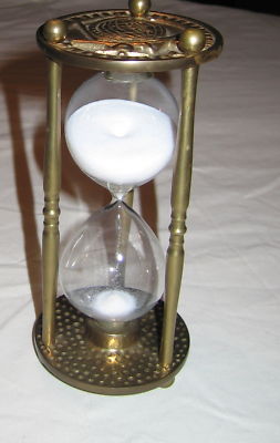 Vintage Brass & Glass White Sand Hour Glass Hourglass
