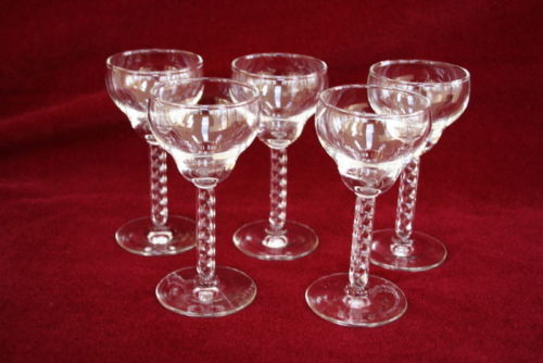 5 Depression Era Wine Glasses Twist Stems