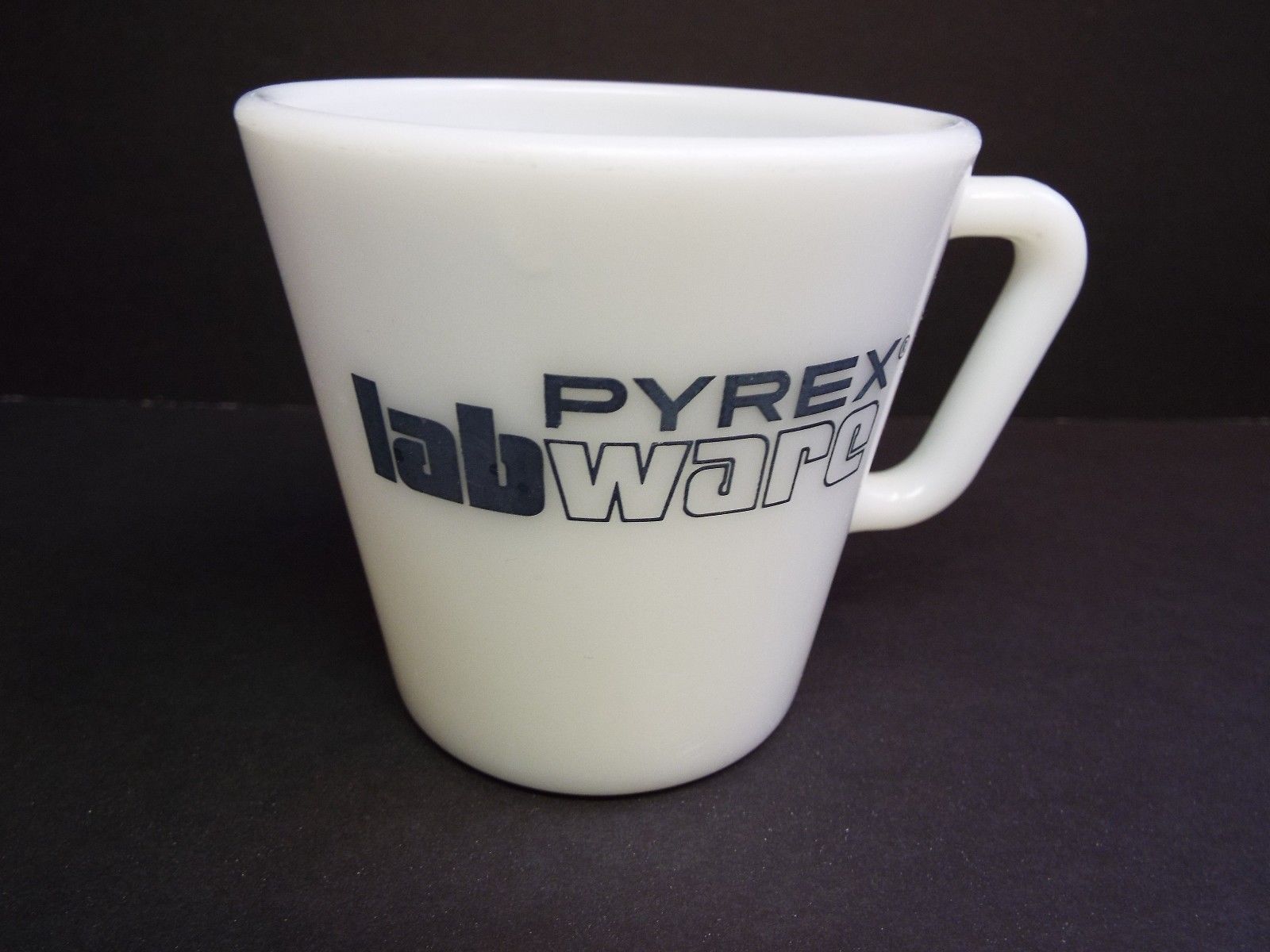 Title (ebay affiliate link): PYREX LABWARE WHITE MILK GLASS COFFEE MUG CUP NO. 1410 advertising