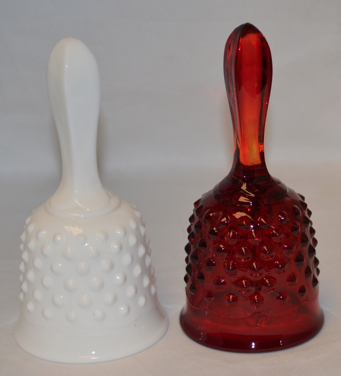 Title (ebay affiliate link): Two Fenton Hobnail Bells - 1 Milk Glass & 1 Orange Ruby Glass - Excellent