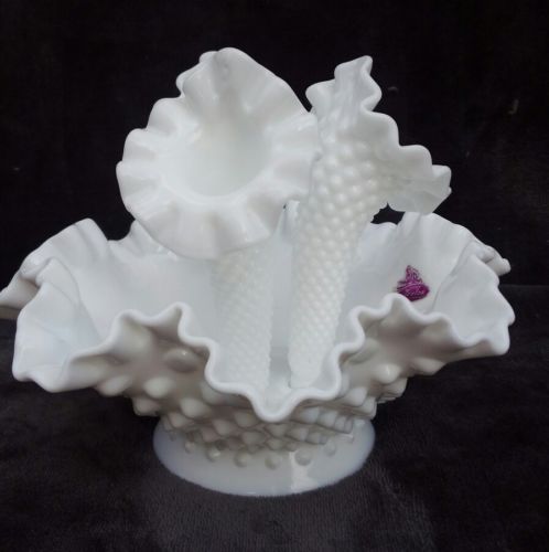 Fenton White Milk Glass Hobnail 3 Horn Small 7" Epergne