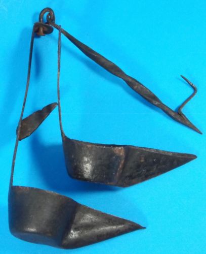 Title (ebay affiliate link): Antique 19th c. Hand Wrought Double Cruisie Grease Fat Lamp Great Condition.