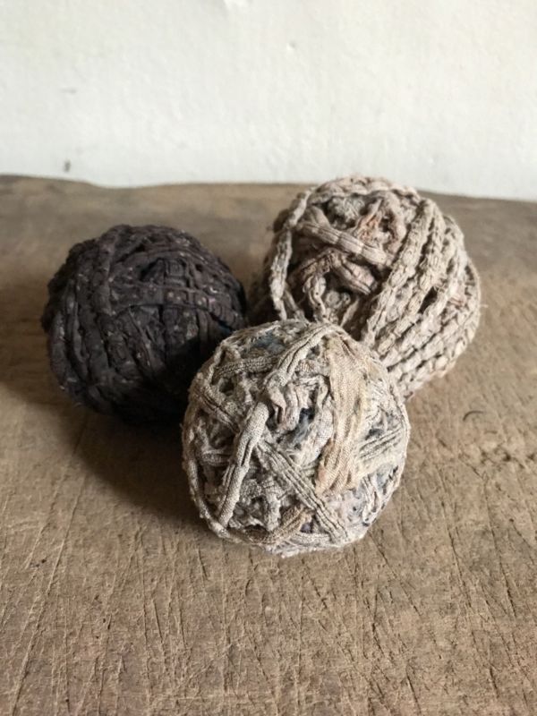 Title (ebay affiliate link): LAST Set Of 3 Early Antique Handmade Brown Rag Balls Ragballs AAFA