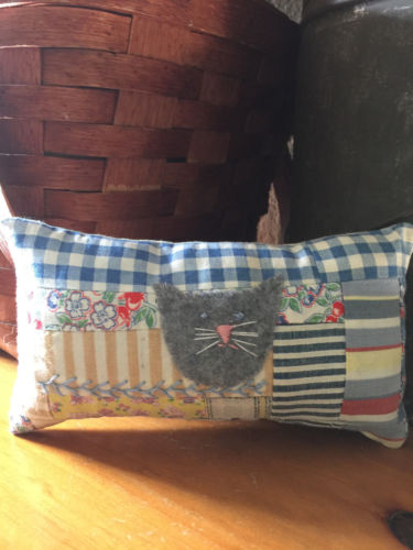 Title (ebay affiliate link): Primitive Stitchery Kitty Cat On A Quilt Ornie Little Pillow Bowl Filler