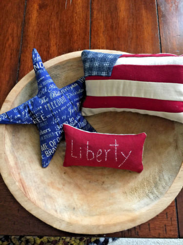 Title (ebay affiliate link): Primitive Stitchery Patriotic Star Flag Liberty Ornies Bowl Fillers