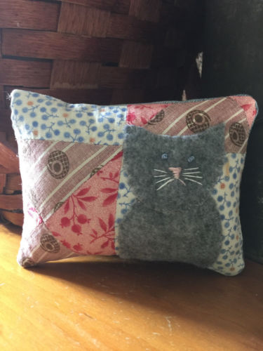 Title (ebay affiliate link): Primitive Stitchery Kitty Cat On A Quilt Ornie Little Pillow Bowl Filler