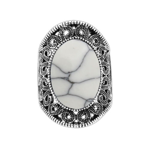 Title (ebay affiliate link): Flower Design White Howlite Turquoise Ring Antique Silver Plated Jewelry #8