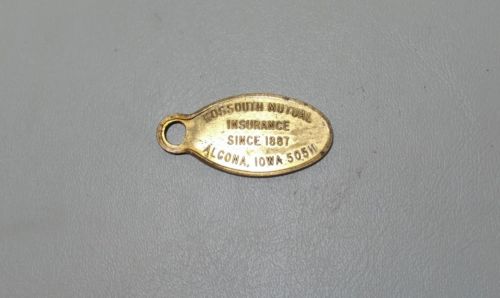 Vintage Kossouth Mutual Pre DAV Key Chain License Tag, Algona Iowa