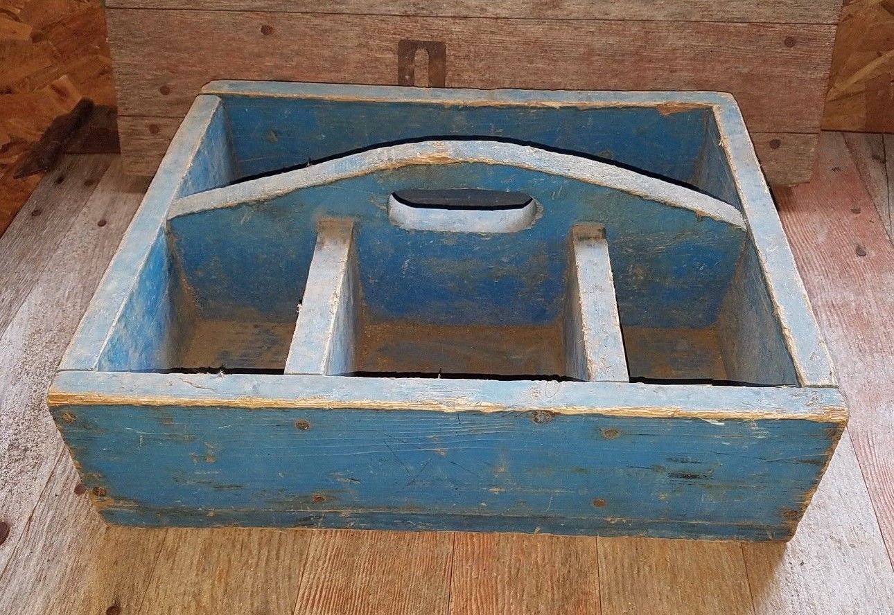 Vintage Wood Tool Tote Carrier Primitive Divided Rustic Wooden Box