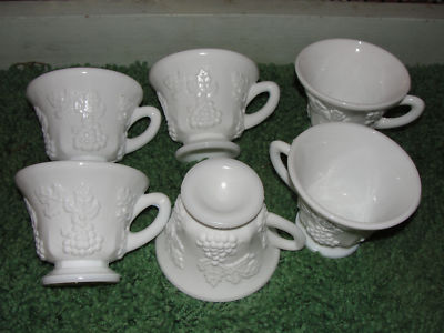 VINTAGE INDIANA HARVEST GRAPE MILK GLASS 6 CUPS Antique