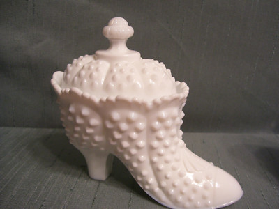 Fenton ''Milk Glass Hobnail Shoe w/Lid''