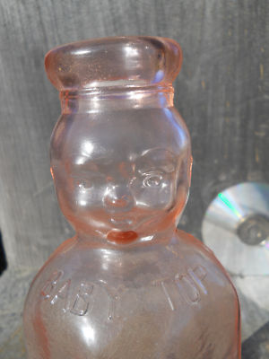 BABY TOP MILK BOTTLE PINK DEPRESSION GLASS QUART SIZE