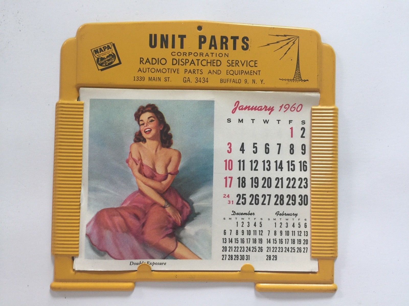1960 NAPA metal desk calendar 11 pin-up girls 5"