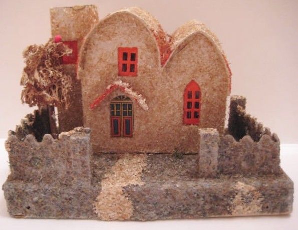 Title (ebay affiliate link): Old Cardboard Christmas House for Putz Village w/ Moss Tree