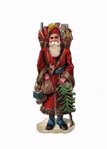 Title (ebay affiliate link): Antique VICTORIAN CHRISTMAS DIE-CUT Diecut SANTA RED ROBE Toys Tree 6 1/2"