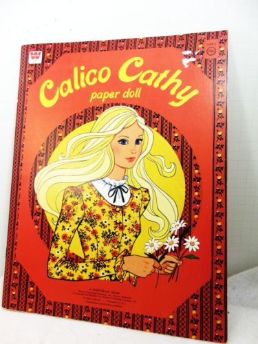 Title (ebay affiliate link): PAPER DOLL CUTOUT UNCUT WHITMAN 1976 CALICO CATHY BOOK COVER ART HIPPIE RETRO