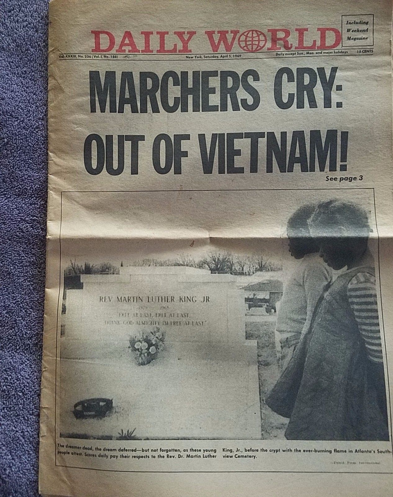 Vietnam protests COMMUNIST PAPER NYC Daily World April 5, 1969 Original