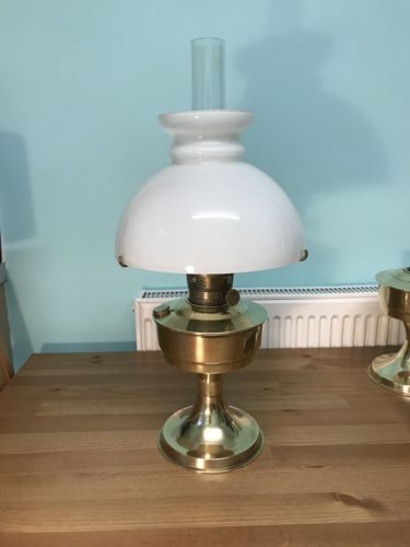 Title (ebay affiliate link): Vintage "Aladdin" No 23 Brass Coloured Oil Lamp with White Shade and Chimney