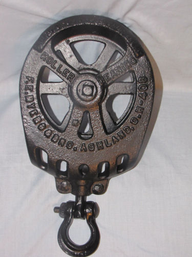 Title (ebay affiliate link): Antique F.E Myers & Bro Ashland Ohio Roller Bearing Cast Iron Hay Trolley Pulley
