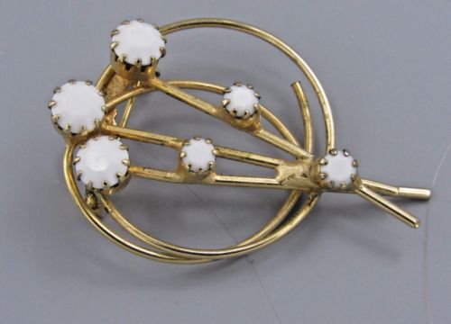 Title (ebay affiliate link): Vintage Jewelry Faceted Milk Glass Flower BROOCH PIN Rhinestone Lot H