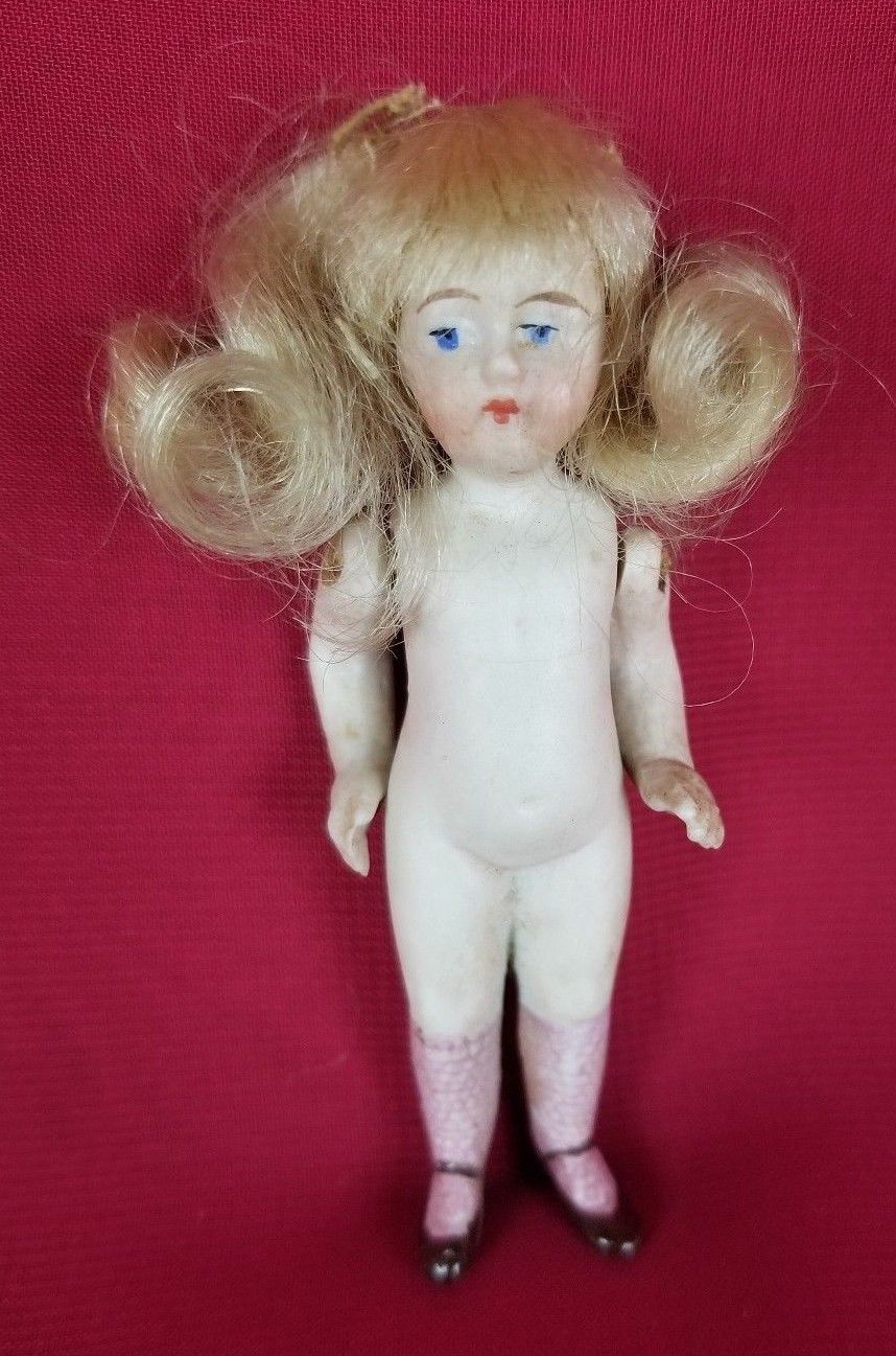 Title (ebay affiliate link): Antique/Vintage All Bisque Doll Blonde Wig Paint Features Socks Heeled Shoes 3"