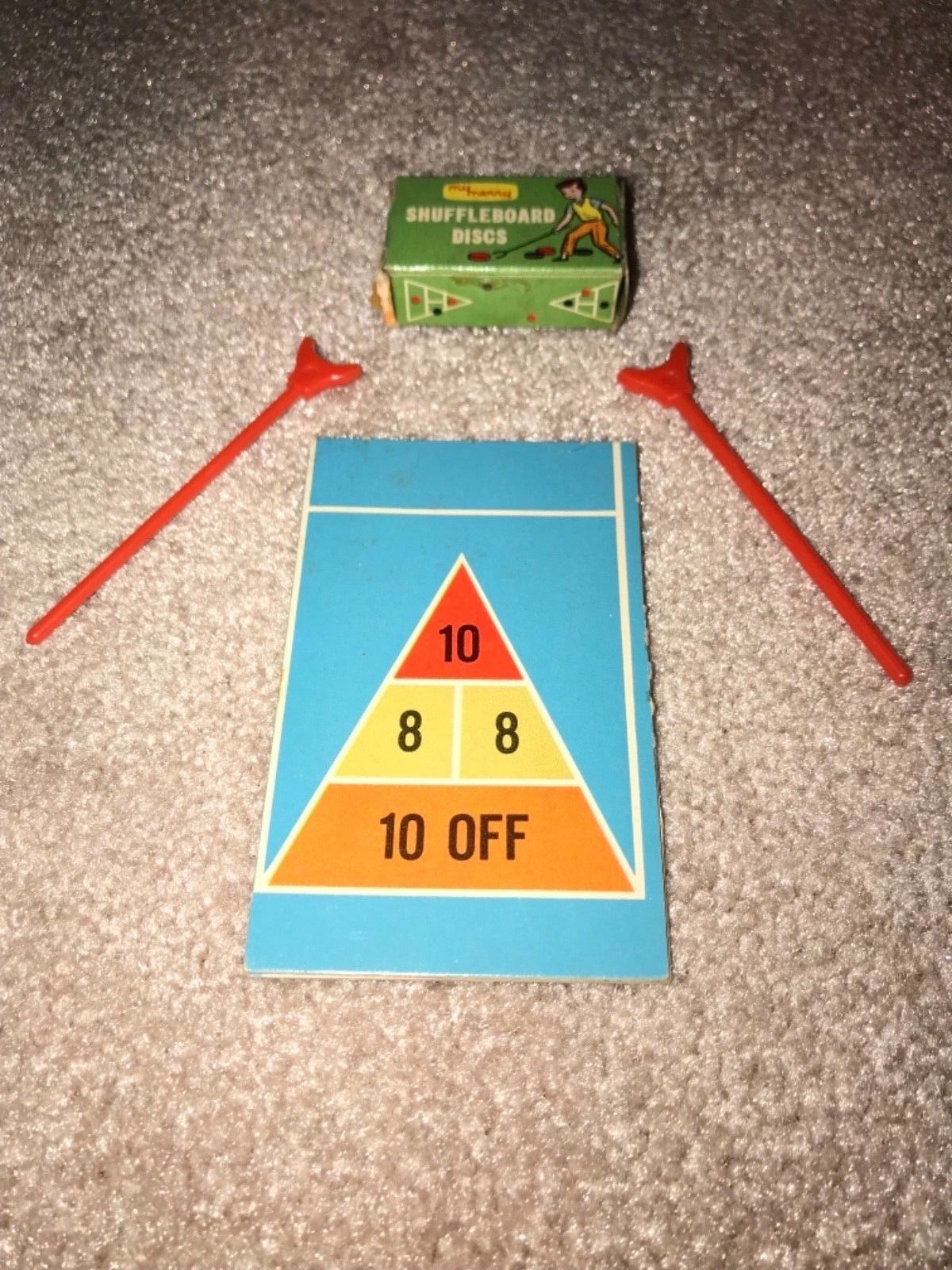 Title (ebay affiliate link): Vintage My Merry shuffleboard child''s miniature toy set