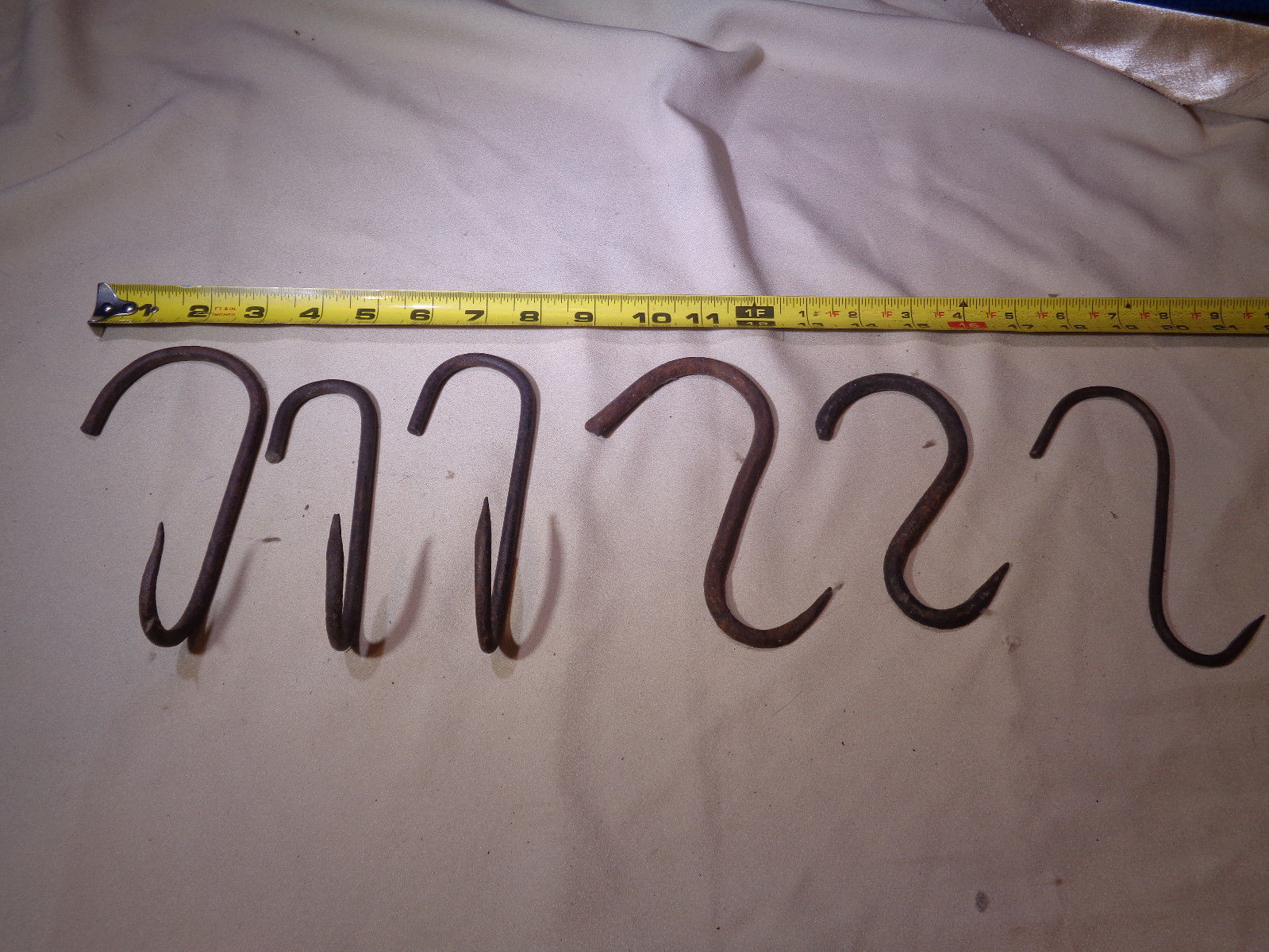 PRIMITIVE WROUGHT IRON HANGING MEAT HOOKS