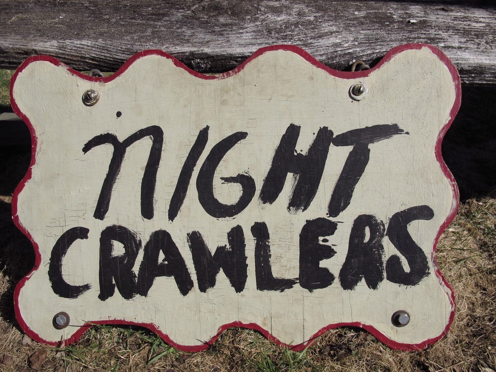 ANTIQUE PRIMITIVE FIGURAL WOOD NIGHT CRAWLERS FISHING SIGN OLD PAINT AAFA