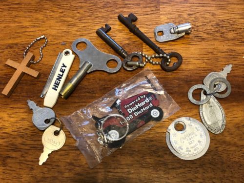 Title (ebay affiliate link): Mixed Lot Antique Skeleton Keys & Machine Keys with keychains
