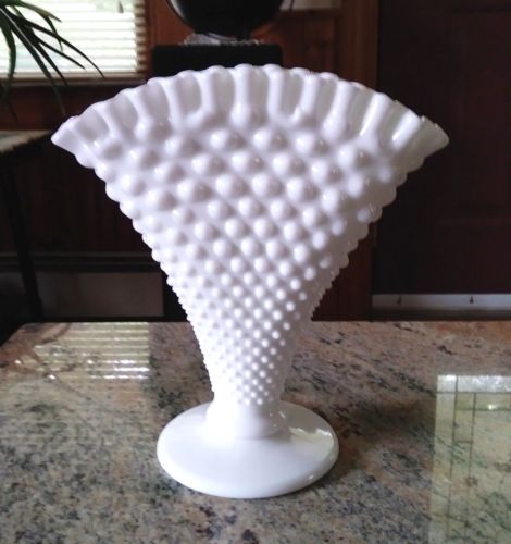 Vintage Fenton Milk Glass Hobnail Pattern Footed Fan Vase