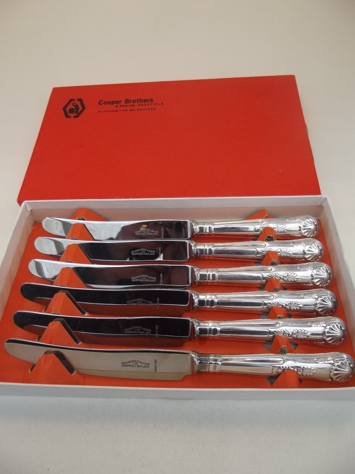 Title (ebay affiliate link): Excellent 6x Cooper Brothers Kings Tea Knives - Silver Plate - Boxed Cutlery