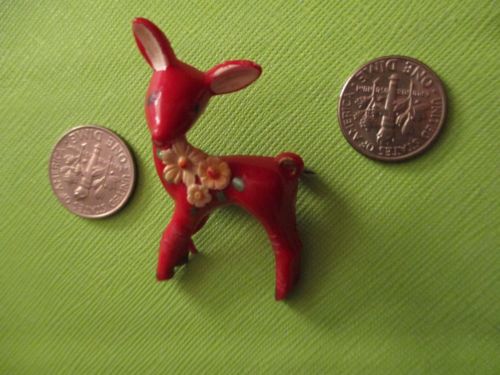 Title (ebay affiliate link): Vintage Red Deer Pin Brooch plastic material bambi fawn w/ flowers